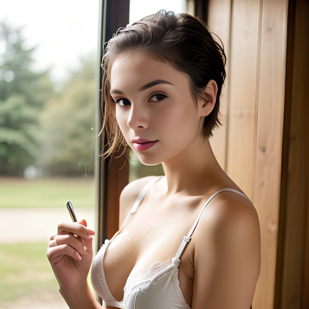 It was a warm summer evening, and Kate, a stunning 28-year-old brunette, was enjoying a relaxing soak in her hot tub. The gentle hum of the jets and the warmth of the water soothed her as she leaned back, her topless figure glistening in the soft glow of the fairy lights strung above.